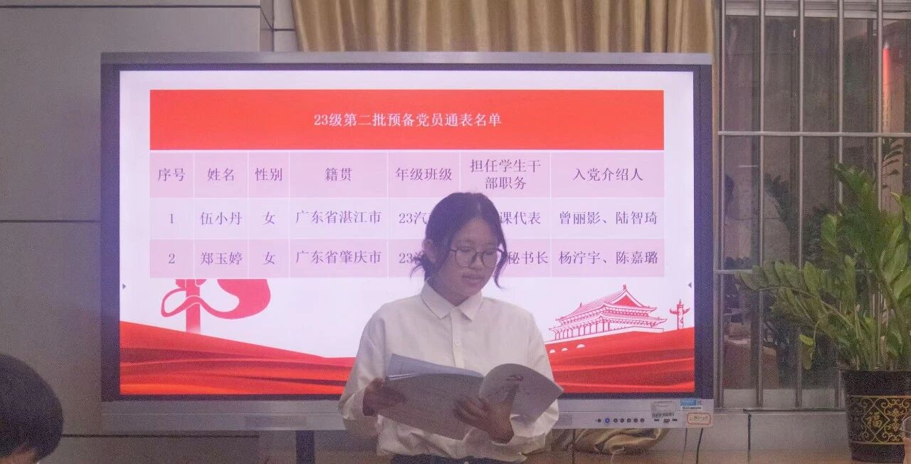 为了进一步加强党组织建设,增强党组织的凝聚力和战斗力,按照党员发展程序规定要求,汽车工程学院党支部于2025年12月2日下午在会议二室召开了支部会议。汽车工程学院党支部的全体党员教师以及23级第二批拟接收预备党员伍小丹、郑玉婷参加会议。本次大会由党支部组织委员郭银芳老师主持。
