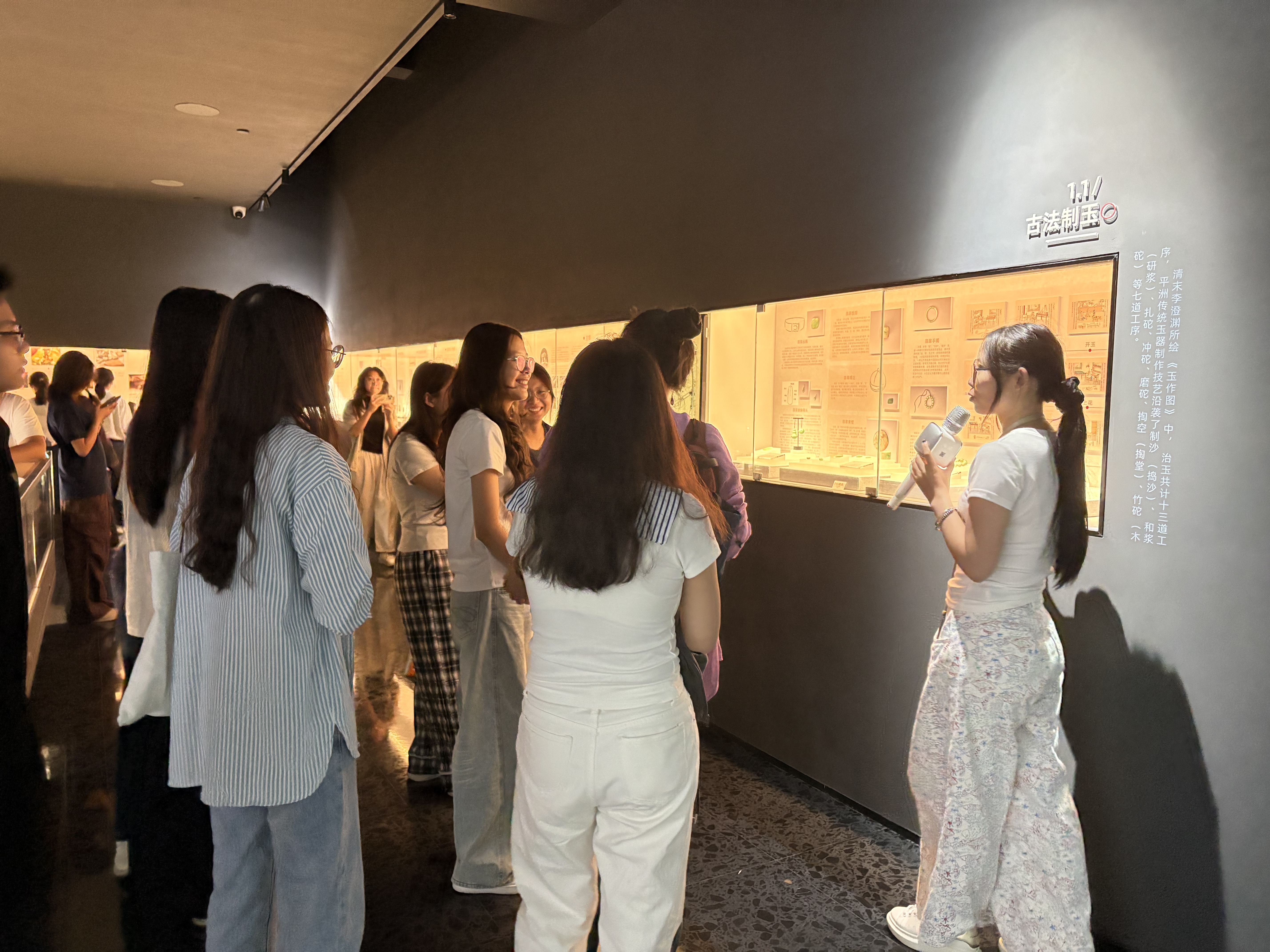 在平洲珠宝玉器协会文化馆,同学们聆听了平洲珠宝玉器的发展历程与行业特色,随后观摩了玉器制作工艺,并欣赏了精美玉器及玉雕作品。参观中同学们踊跃提问,与讲解员深入交流,现场氛围热烈。在这里,同学们直观感受玉器文化魅力,有效深化了对珠宝玉器行业的认知。