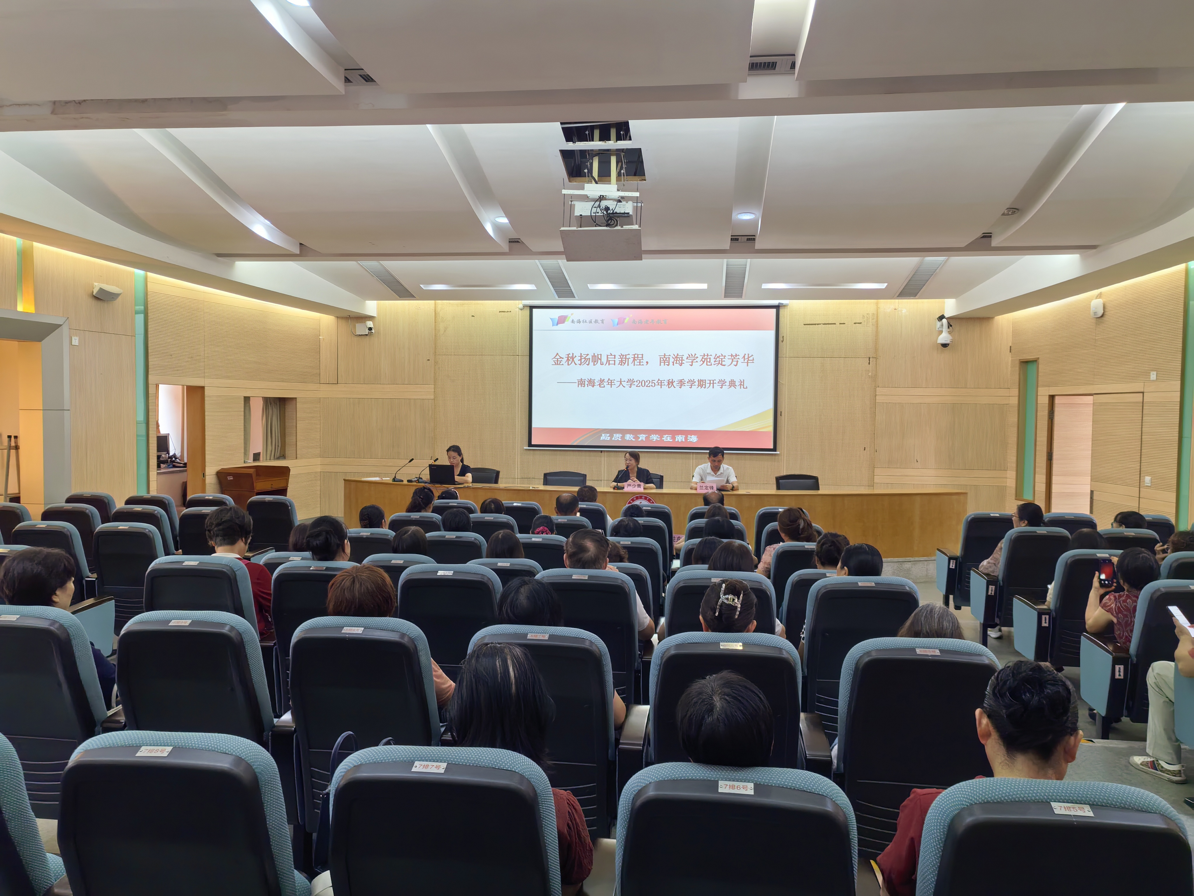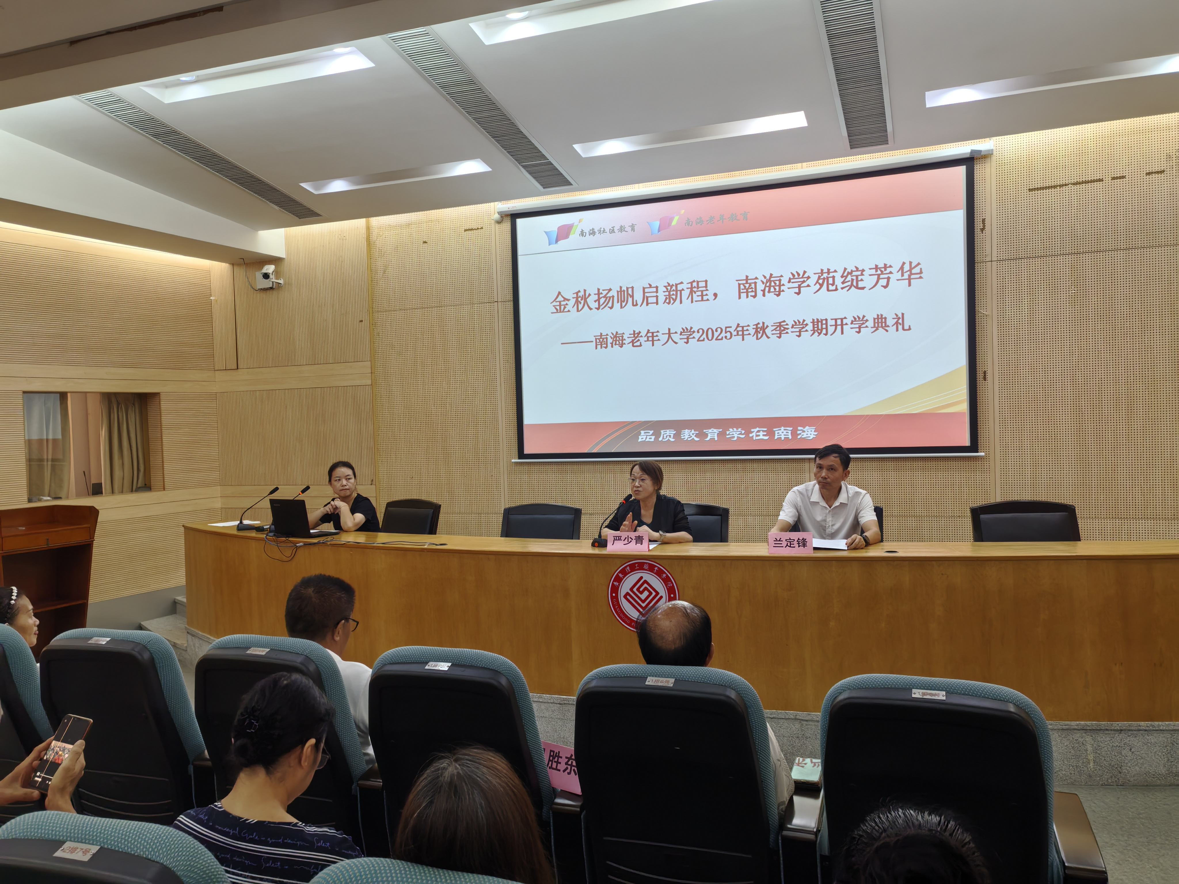 秋风送爽,丹桂飘香。在这个充满希望与收获的季节,南海老年大学迎来了2025年秋季新学期。9月16日上午,以“金秋扬帆启新程,南海学苑绽芳华”为主题的开学典礼在学校1201室隆重举行。学校领导、继续教育处工作人员、授课老师以及70多名老年学员齐聚一堂,共同开启新学期的精彩篇章。