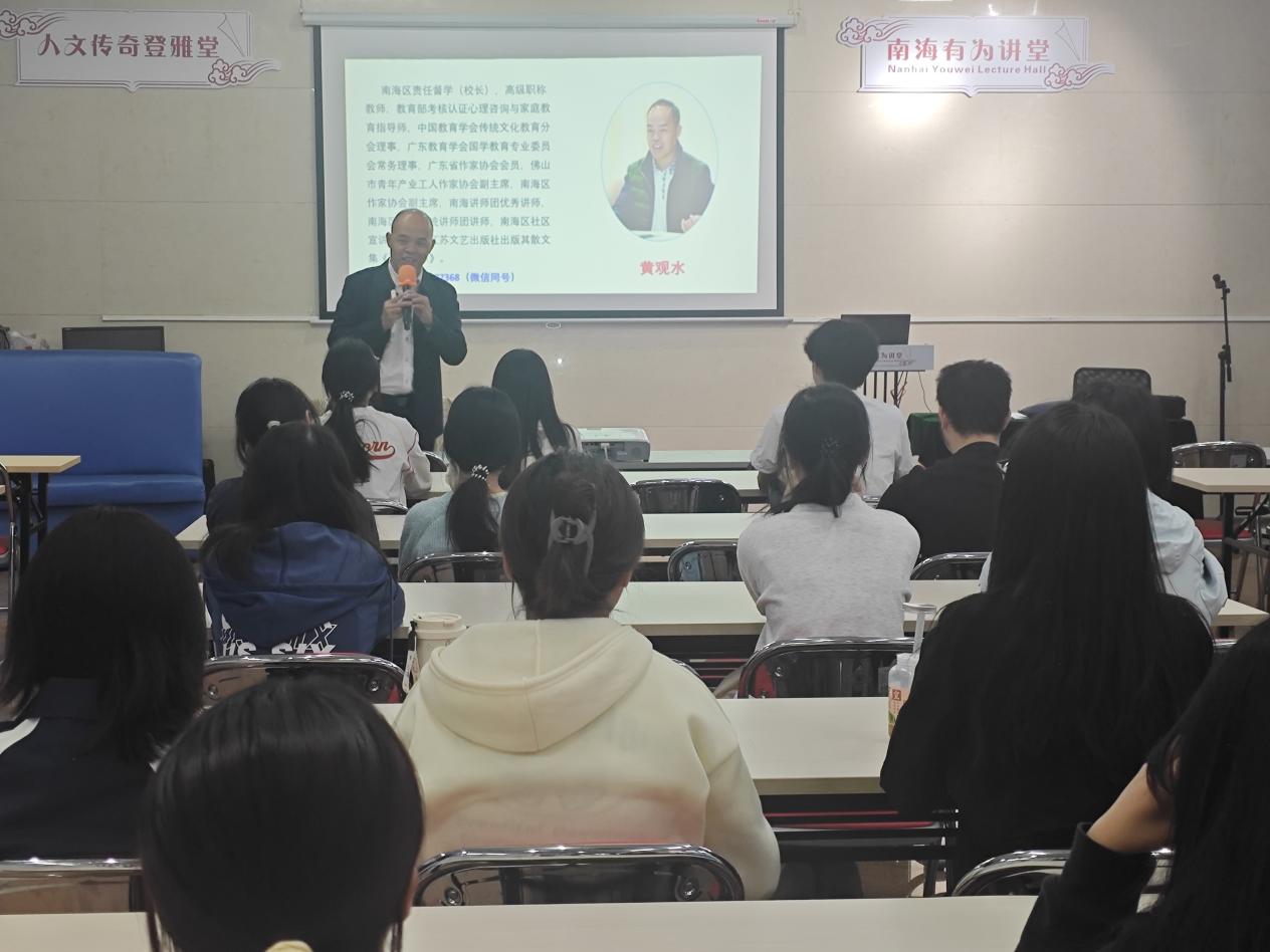 12月11日晚,南海开放大学的“南海有为讲堂”内灯火通明,一场以“黄岐龙母庙文化基因”为主题的深度对话在此展开。南海区责任督学、教育部认证家庭教育指导师及本土文化研究学者黄观水,正通过“神话—民俗—治理—发展”的多维叙事,揭开了黄岐龙母文化“大爱基因”与幸福南海建设的共生密码。这场讲座不仅是一次文化溯源,更是一场关于城市精神与民生福祉的思想碰撞,尤其为在场的青年学子呈现了一堂生动深刻的思政教育课。