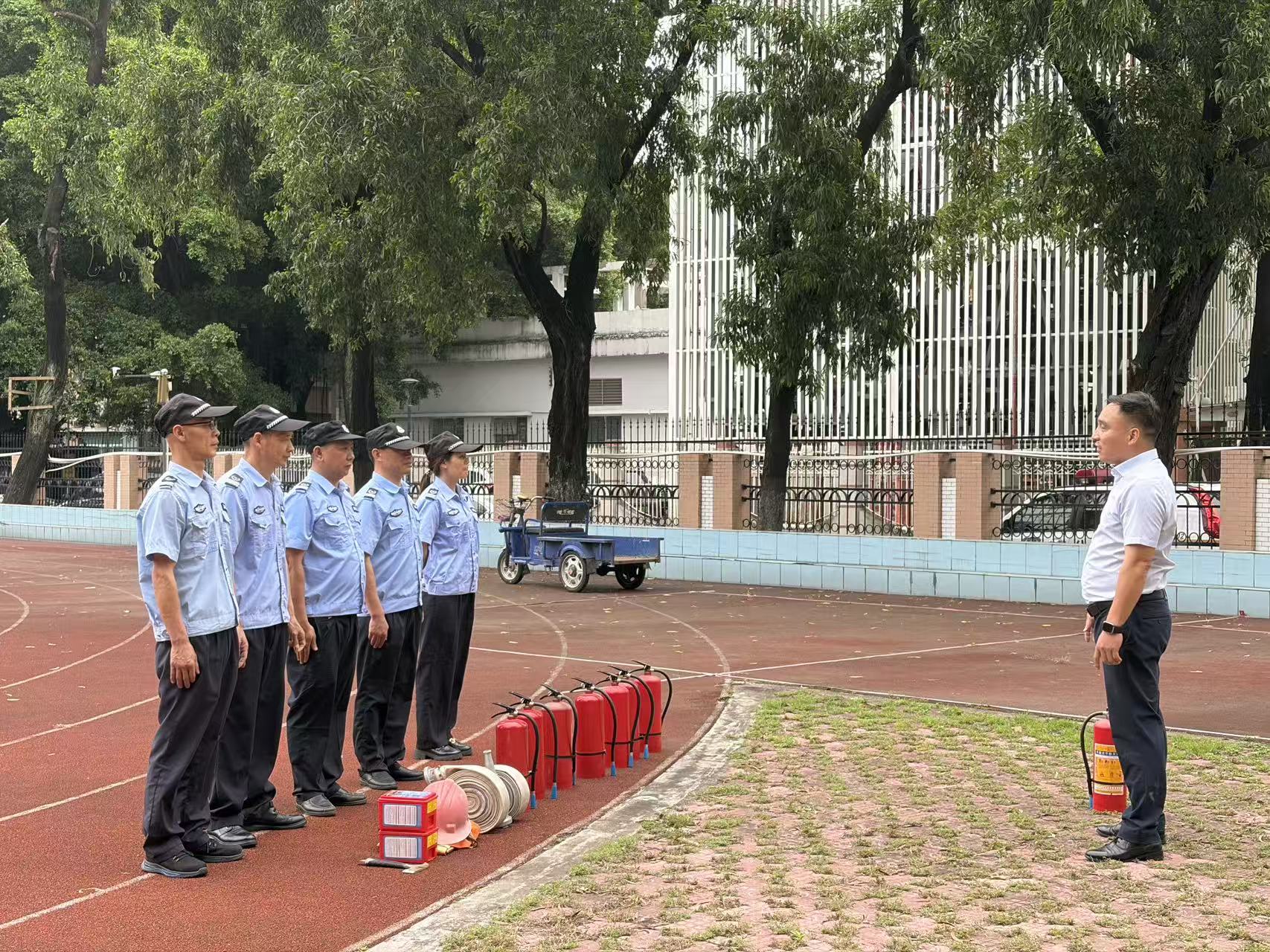 培训最后,总务处陈应海副主任作总结讲话(图7),他强调,校园安全无小事,安保队伍是守护师生安全的第一道防线,容不得丝毫懈怠。全体安保人员要以百分百的责任心做实做细校园安全防范工作,坚决防范各类突发安全事件,为全校师生营造安全、稳定、和谐的校园环境。