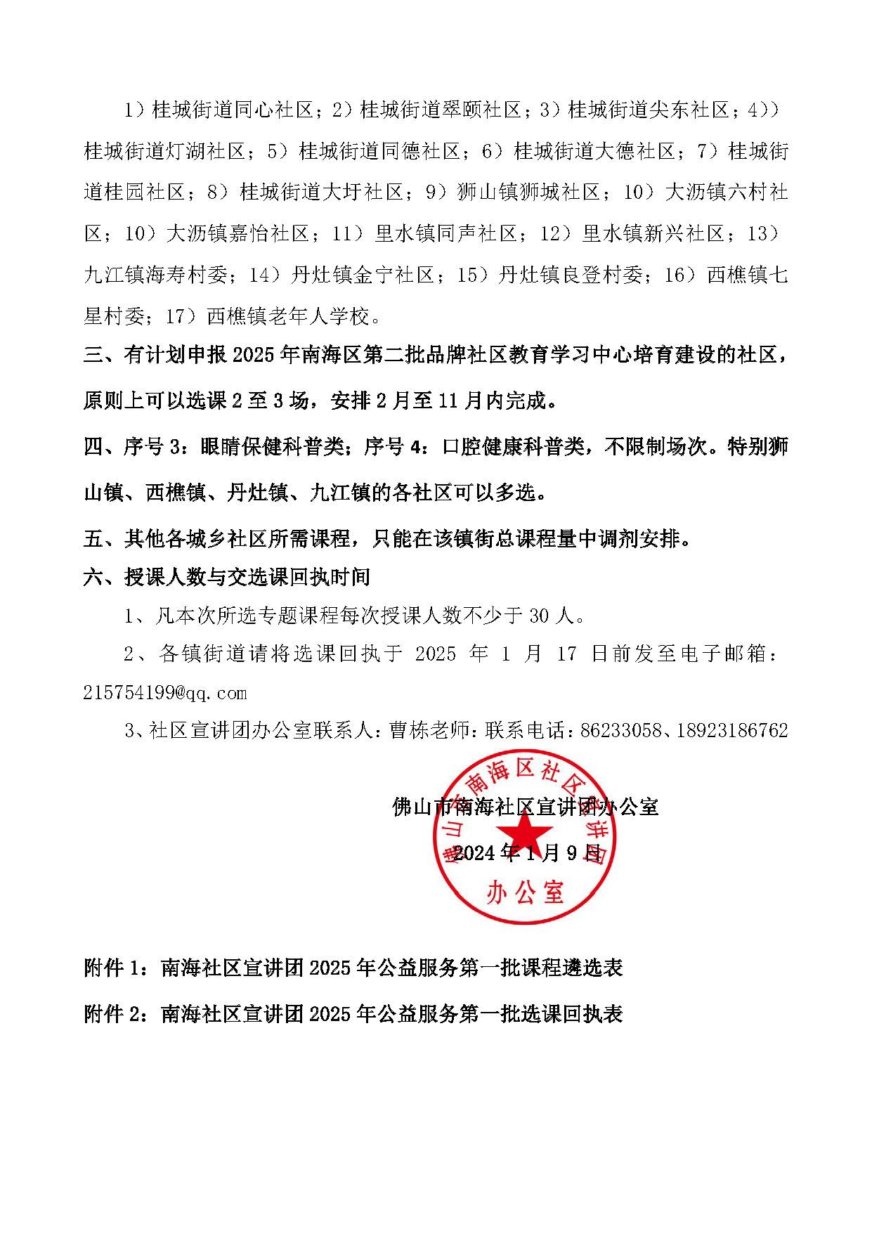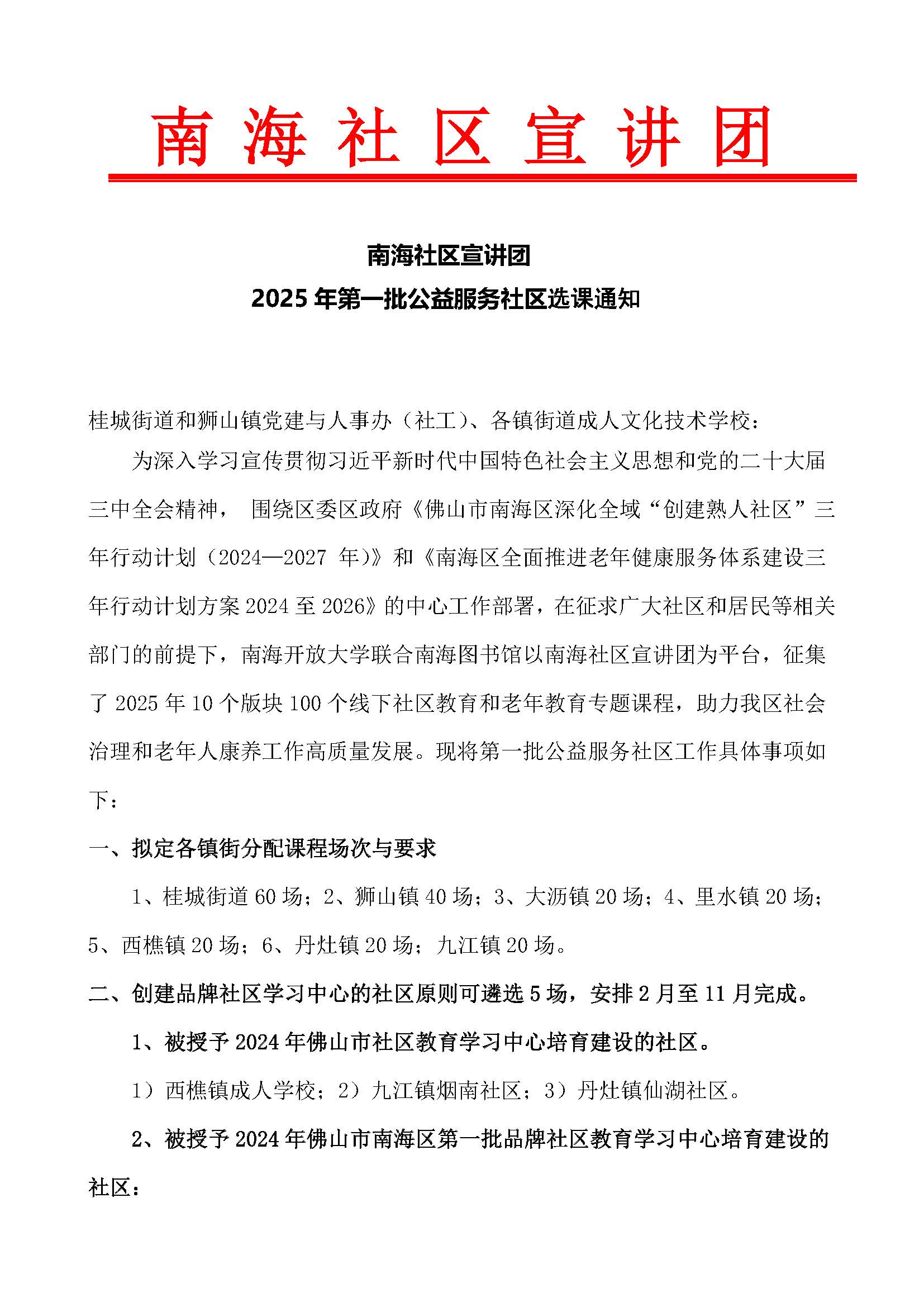 南海社区宣讲团2025年公益服务社区第一批选课通知