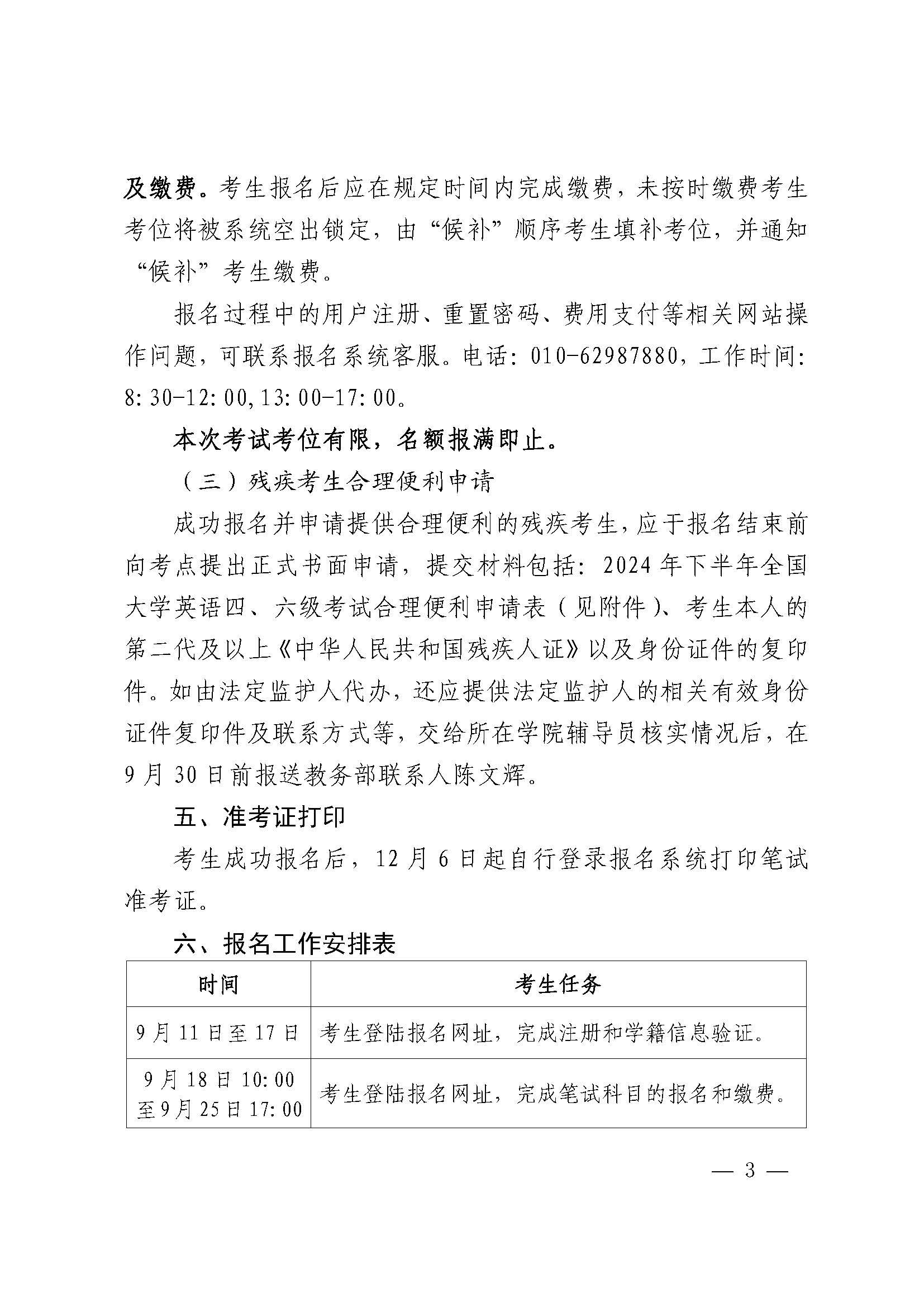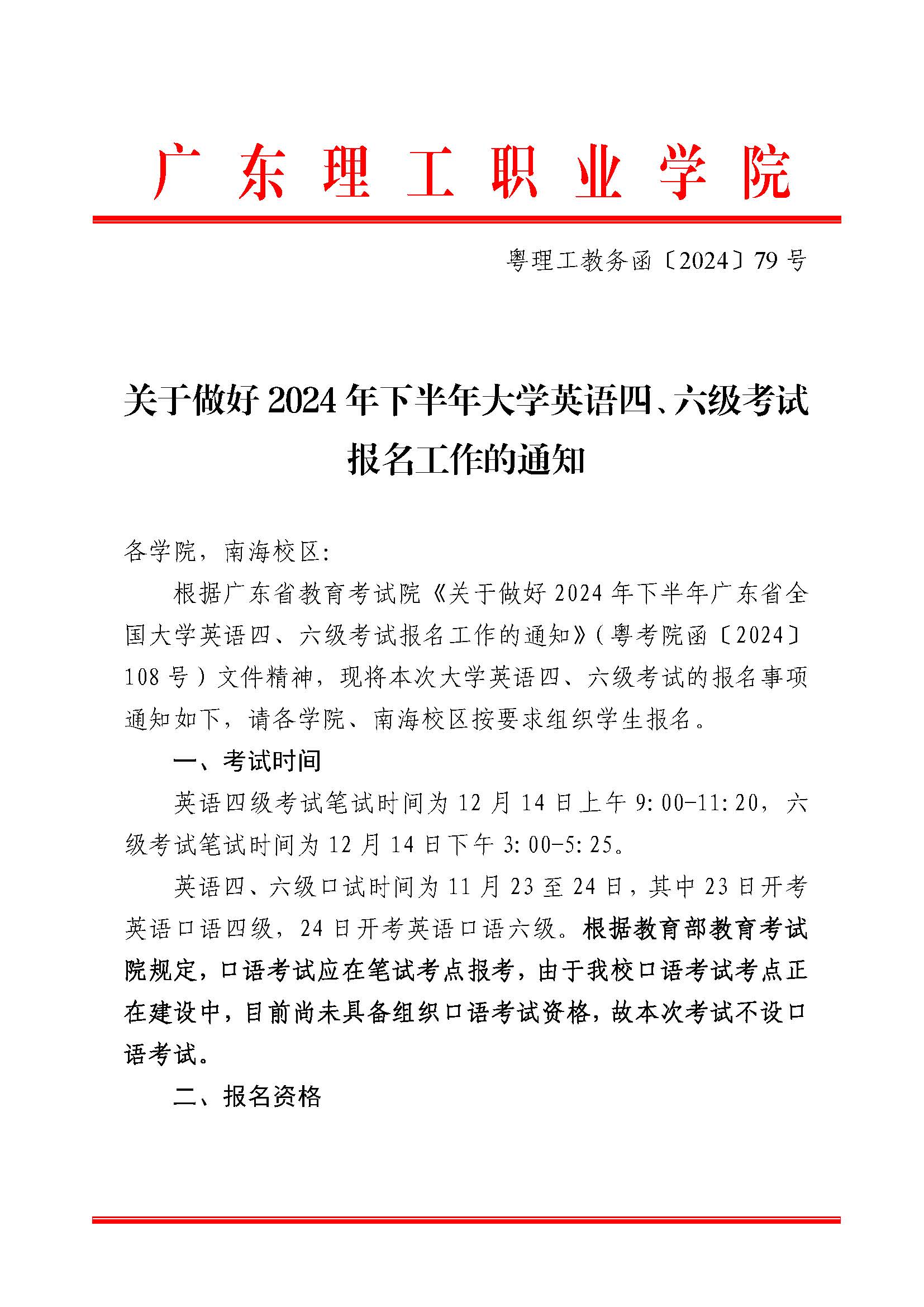 关于做好2024年下半年大学英语四、六级考试报名工作的通知
