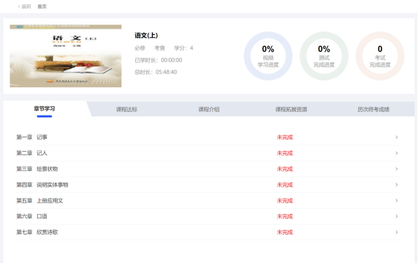 4. 进入后即可看到自己的待学内容,再次点击科目后可进入具体章节内容。