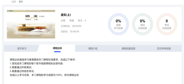 8. 在“课程达标”板块,可以看到课程达标需要完成的任务。