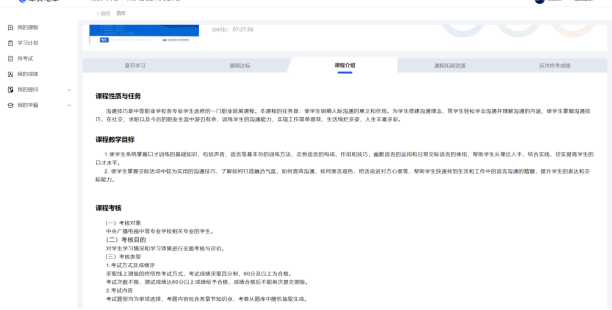 9.在“课程介绍”板块,可以看到本课程的详细介绍,包括课程性质与任务、课程教学目标、课程考核、教学内容结构、教材名称等。