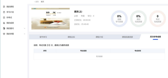 11.在历次终考成绩位置,学生如考试3次,会有3个考试成绩,系统选最高成绩为最终成。