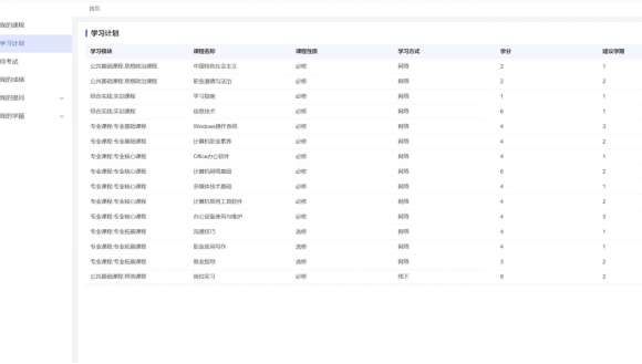 12. 在左侧“学习计划”模块可以看到课程性质、学习方式、课程形式、课程所占比例等信息。