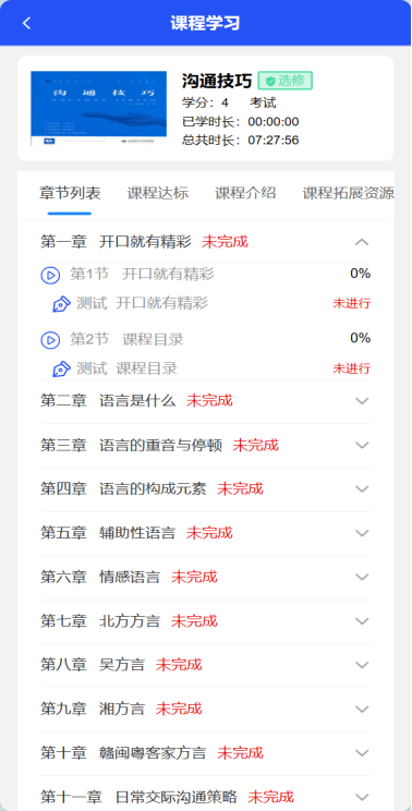 6.每小节的视频,需要认真学习,不能进行进度调节。建议换个课程视频